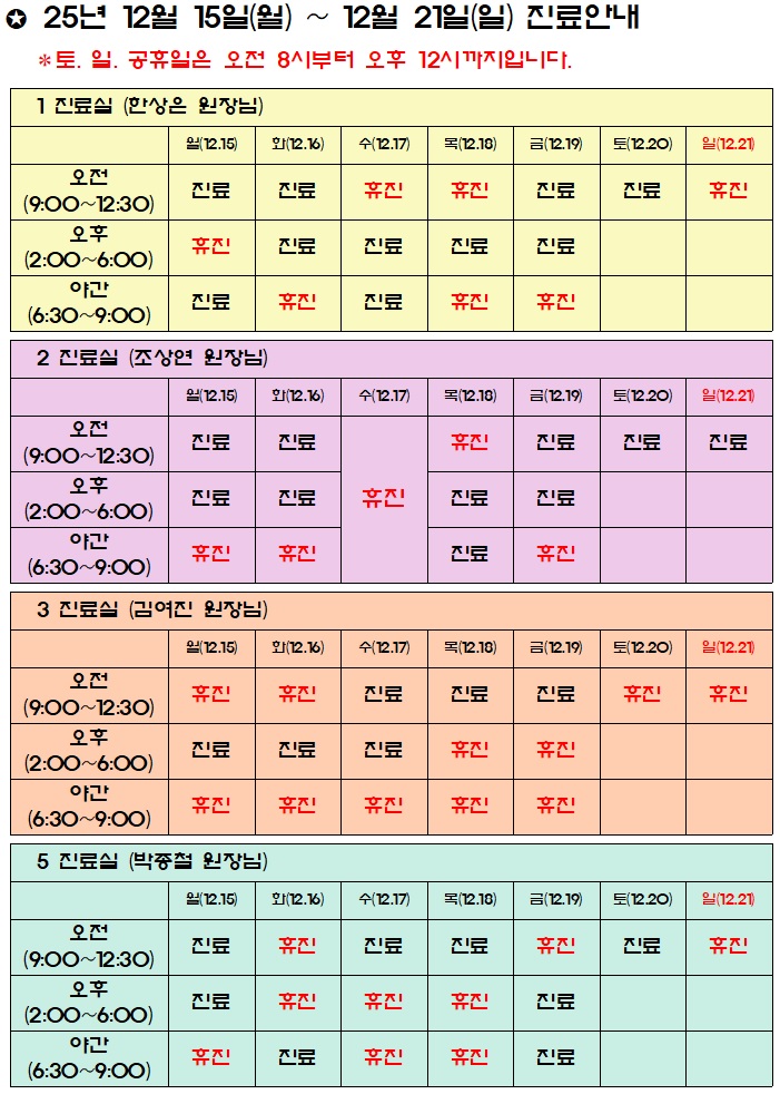 진료시간표/공지사항