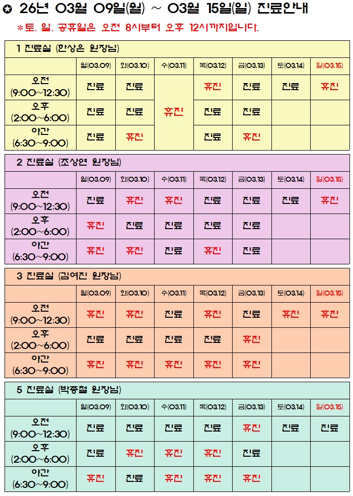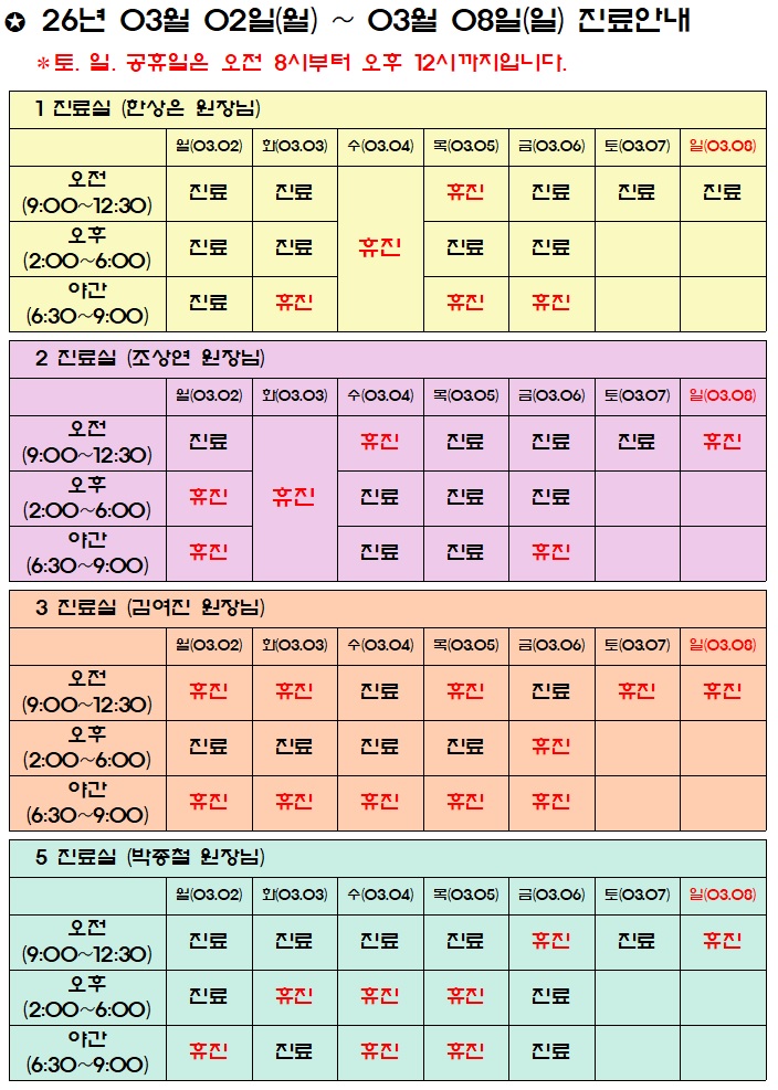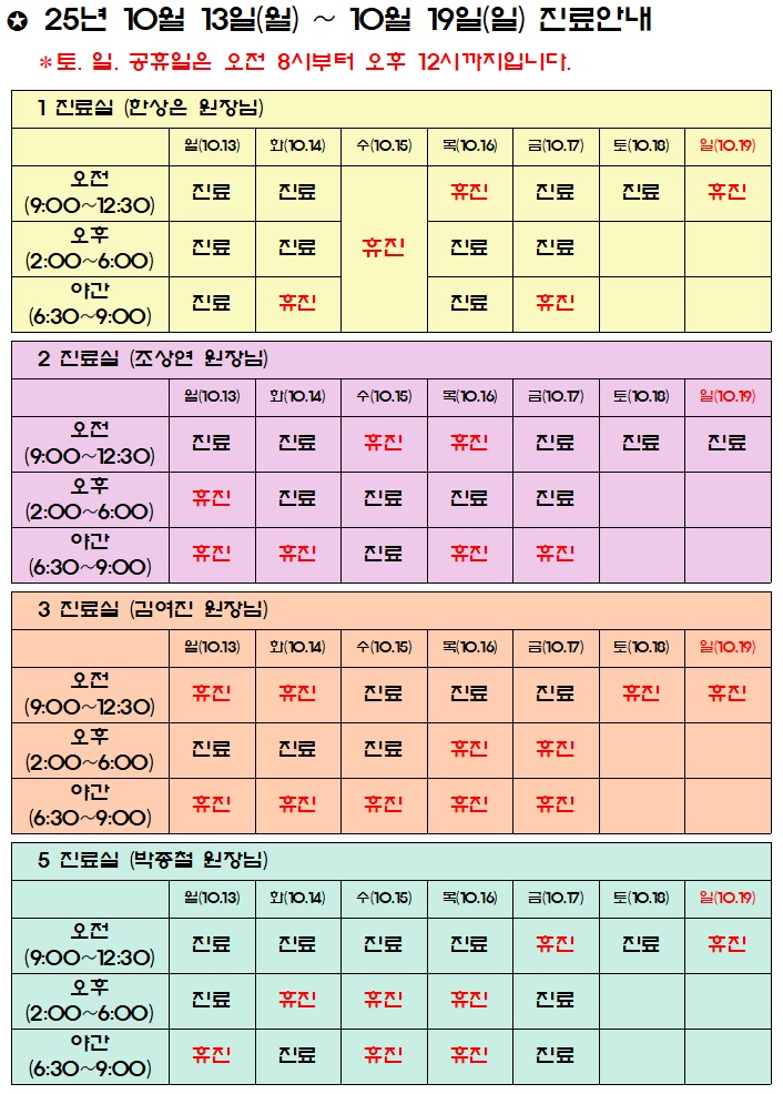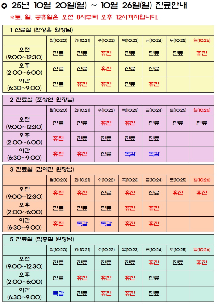 진료시간표/공지사항