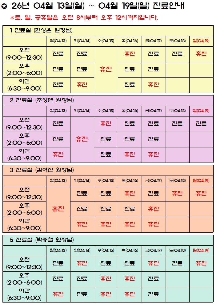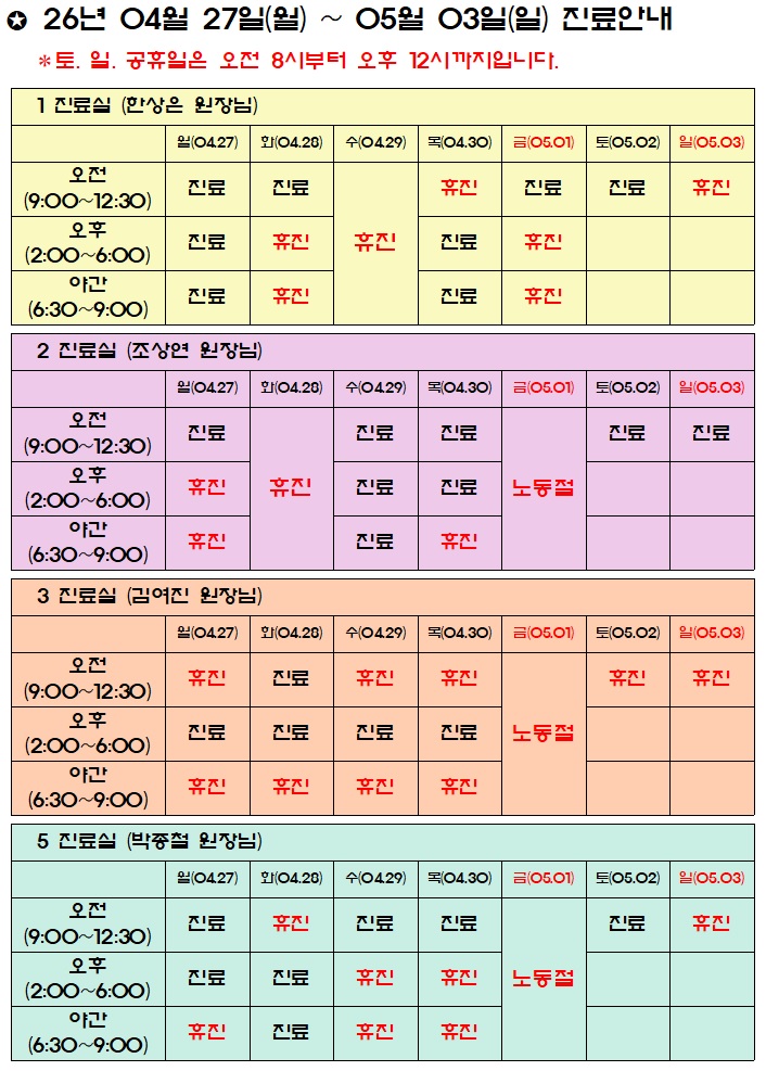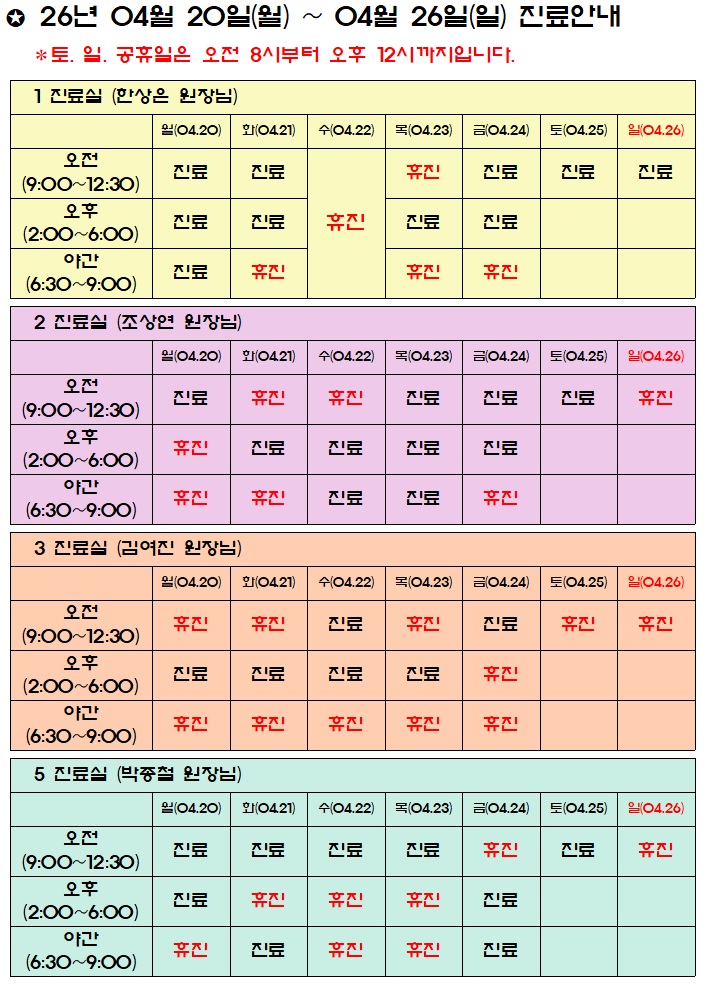 예담소아과 진료시간표를 안내합니다.