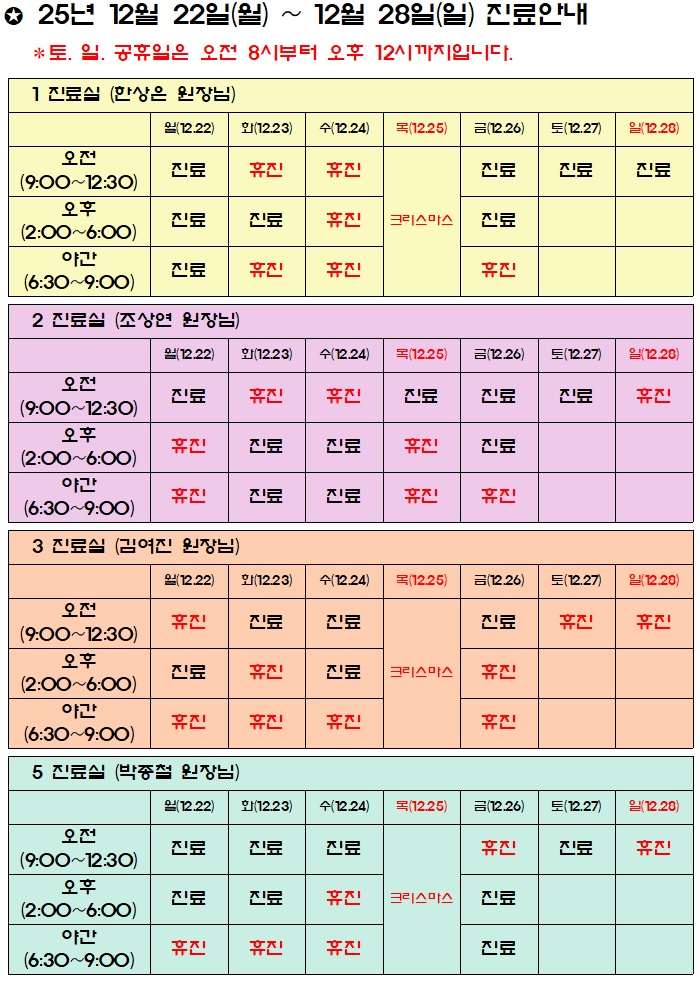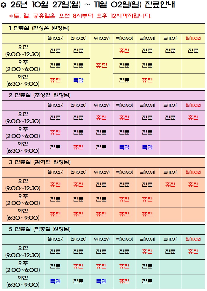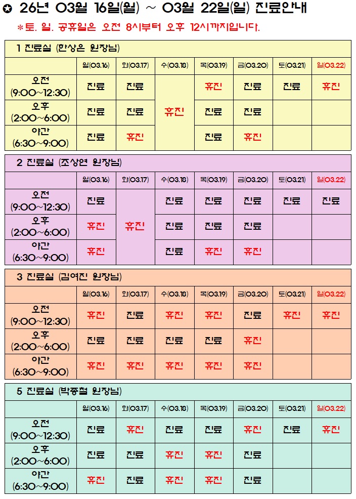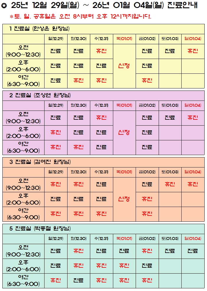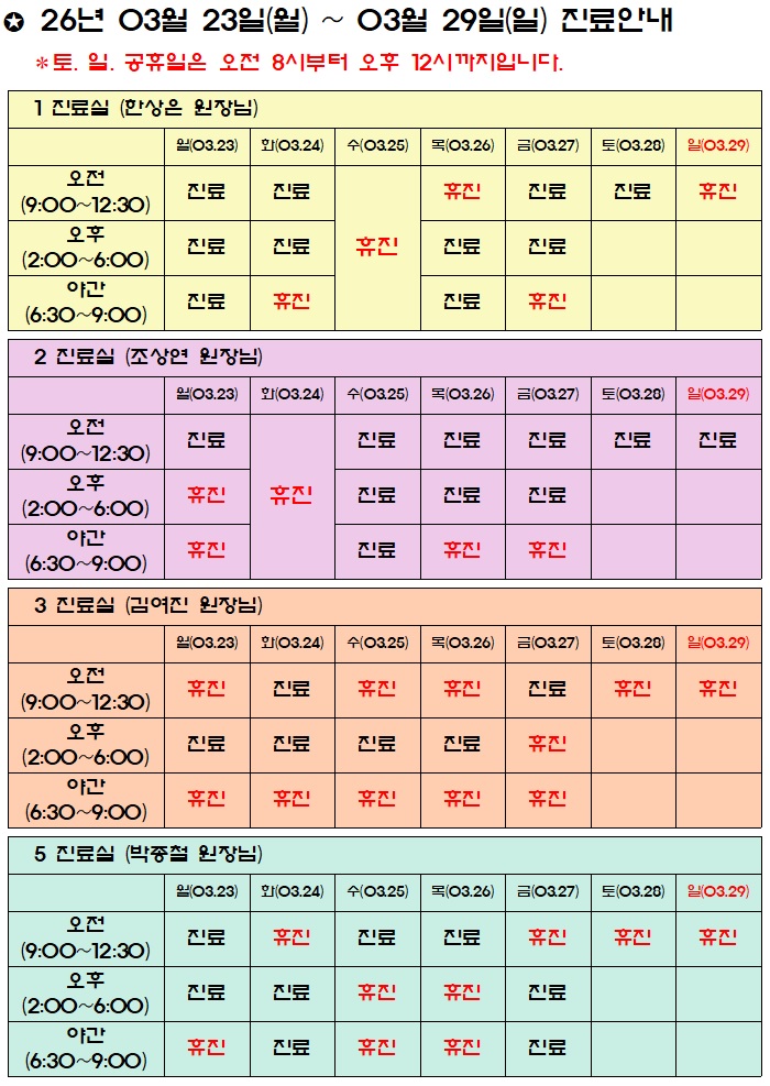 진료시간표/공지사항